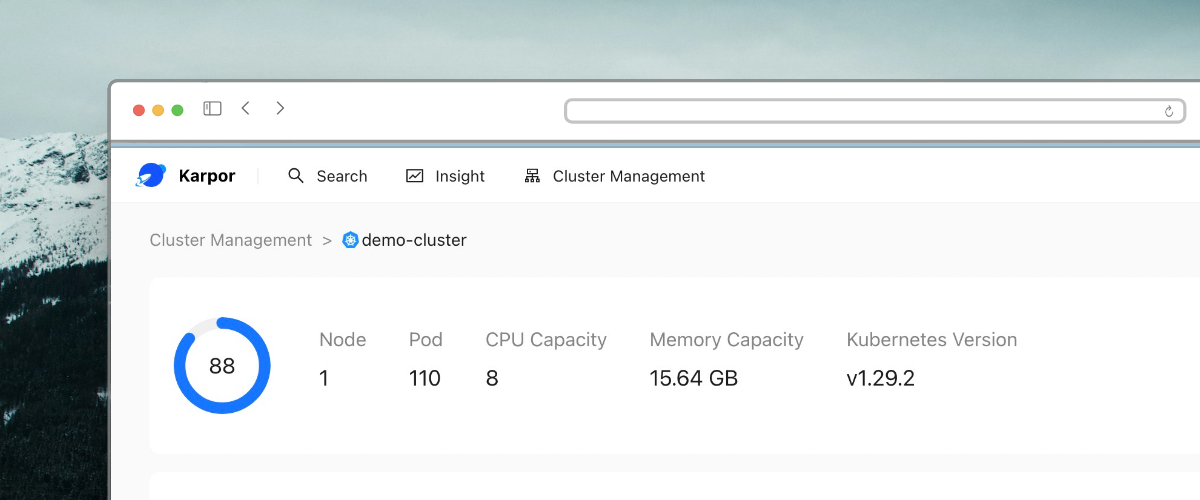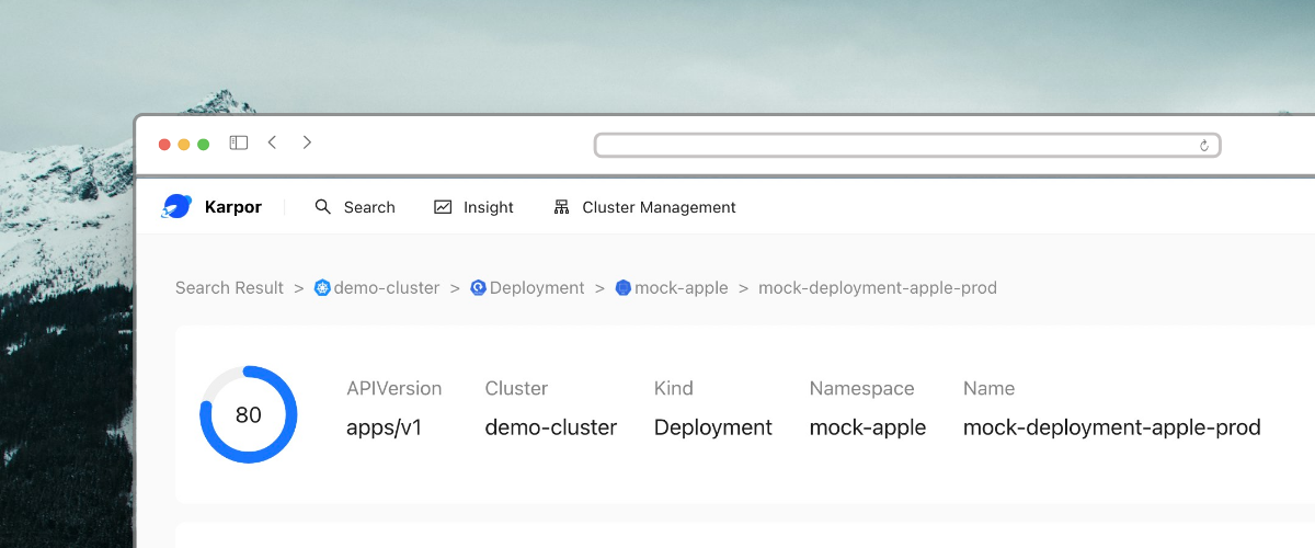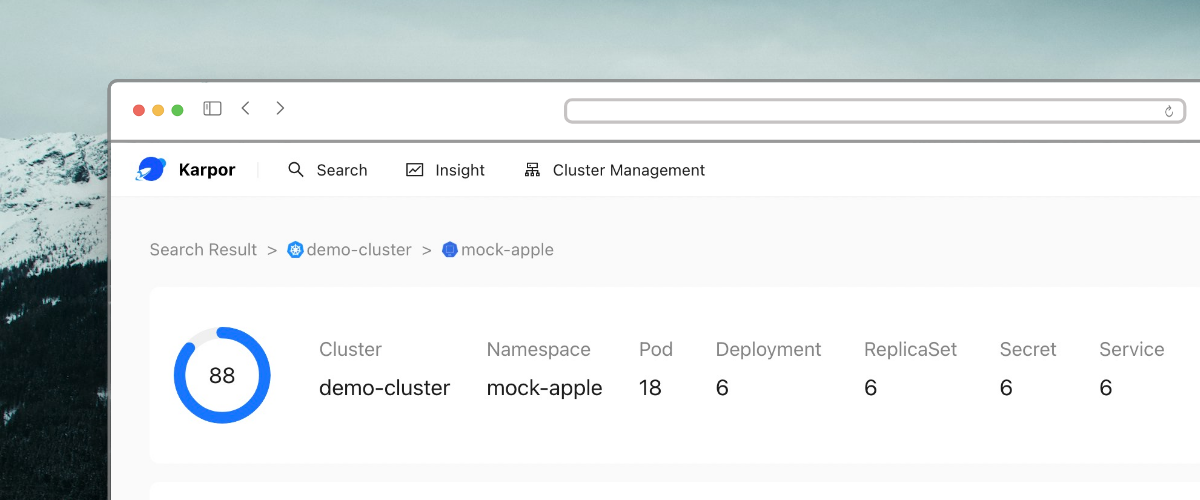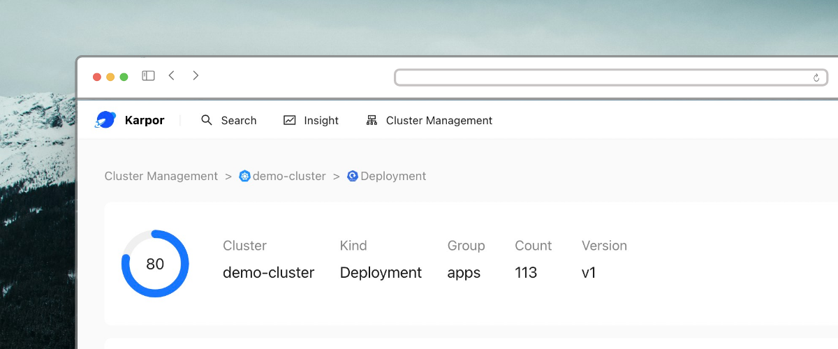在本节中,我们将了解 Karpor 洞察页面上的 概览卡片,它们用于快速查看和理解当前资源组或资源的关键指标。